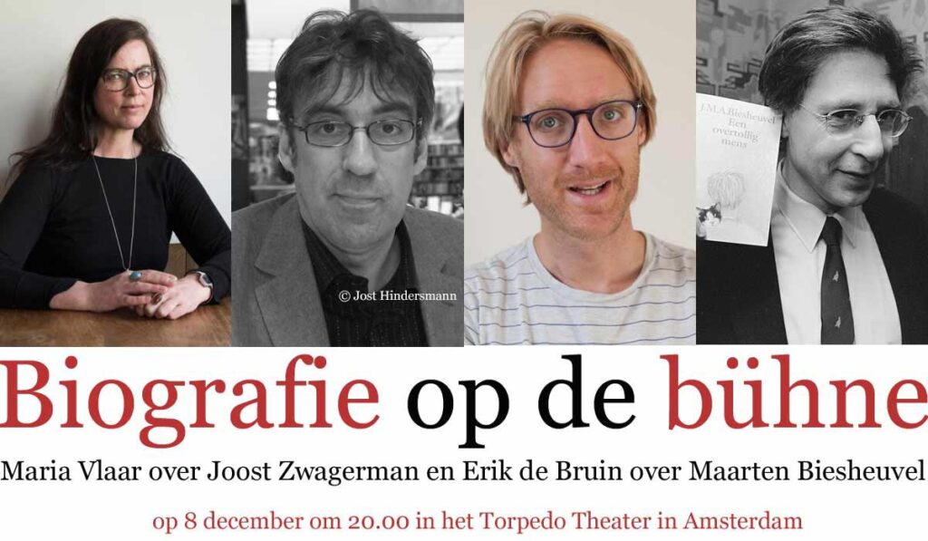 Op 8 december zijn Maria Vlaar en Erik de Bruin te gast tijdens Biografie op de bühne, het maandelijkse praatprogramma van Biografieportaal. Maria Vlaar is de auteur van Zwaag. De zeven levens van Joost Zwagerman en Erik de Bruin werkt aan een biografie van Maarten Biesheuvel.Maria Vlaar over Joost Zwagerman